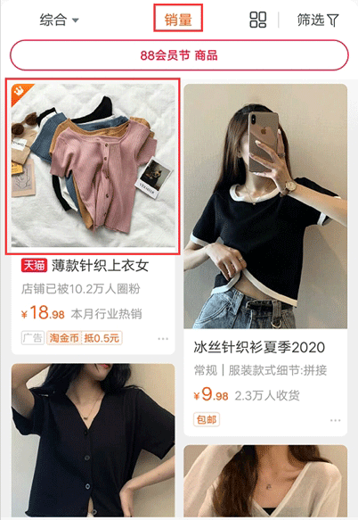 PS:什么样的消费者会在销量排序下浏览或购买产品?一般来说都是有强烈购买需求以及明确购买目的的消费者。他们对于产品的购买欲望比普通消费者高很多,投放此渠道所获得的流量精准度较高(流量相对稳定)。