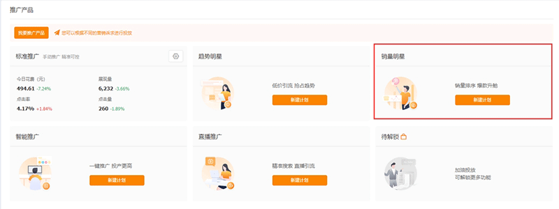 PS:如果你在上述入口中都找不到销量明星的话那就证明你的店铺暂时无法投放销量明星这个渠道哦,且目前暂不开放主动申请!!