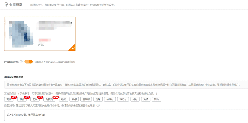 默认开启智能创意,挑选符合自己产品的营销卖点即可。