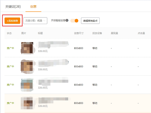 ⑥、创意设置:默认为宝贝的首图(若有更高点击率的图或者有更好的图需要替换或者新增,都可以通过计划的创意模块来完成)。
